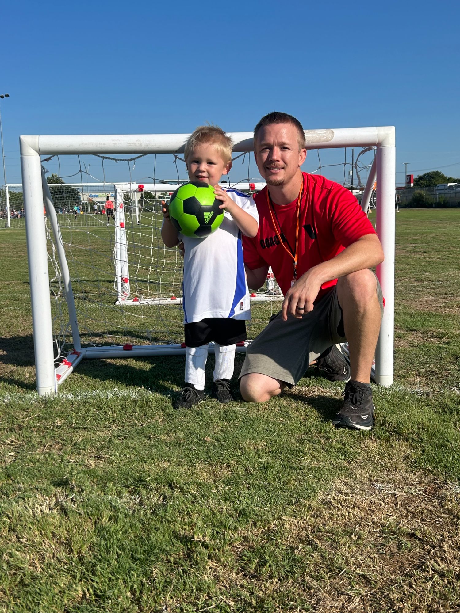 In September Cayden got to play on his first competitive soccer team and of course, we had to sign Tyler up to be one of the coaches. To be honest, we went into the soccer season thinking Cayden was going to be the All Star Player with as many seasons of "Soccer Shots" as he's had. God had other plans to test our patience. We soon realized this would be the season of "warming up" to the idea of a team sport and having to share one ball. The next sport we are going to try out is TBall and we are both excited for that one!